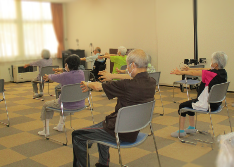 併設の体育館や、グラウンドなどの地域交流スペースで行われる行事、健康体操など、たくさんのイベントに参加しています。ボランティアで参加してくださる地域の方との交流が日常的にあり開放的で様々な楽しみのある生活が送れます。