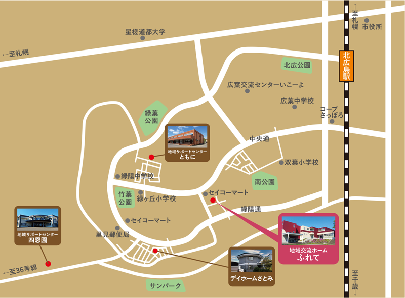 地域の交流拠点である「北広島団地地域交流ホームふれて」の2階にあるデイサービスです。