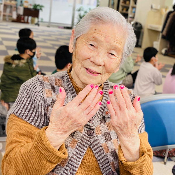 食後はたくさん歩くようにしていて、1階と2階の移動だけでも良い運動になるよ。みんなで体操をしたりストレッチをしたり。ここで運動して少しでも元気でいたいなぁ。帰る前には足をマッサージしてくれるから、とっても楽になる。夜もおかげでぐっすり眠れて元気いっぱい。