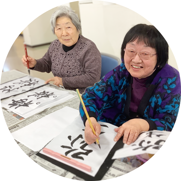 昔、趣味で書道をしていたことがあったけど、かたるで久しぶりに書道会に参加してみたら楽しくて。お友達もできて、冗談を言って大笑いし、お互いに励ましあっています。年に1回、駅の展覧会に出品しているので、頑張ってずっと続けたいです。