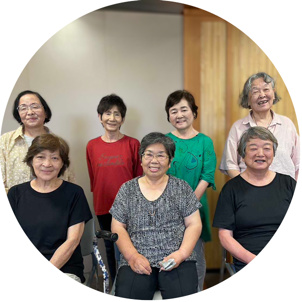 仲間と一緒に団地の集会所で「元気クラブ」を開きました。月1回集まり、健康づくりや詐欺防止などいろいろ勉強しています。会って話すことって大切、大事な大事な居場所です。